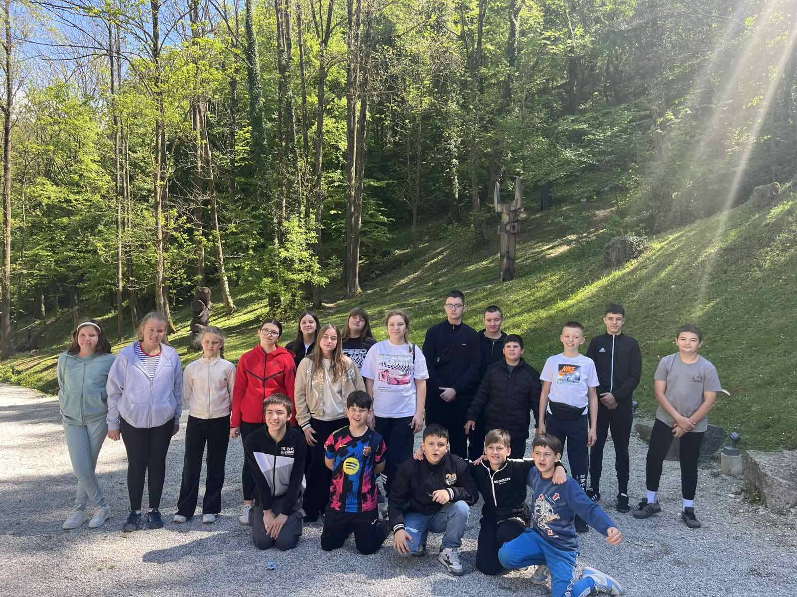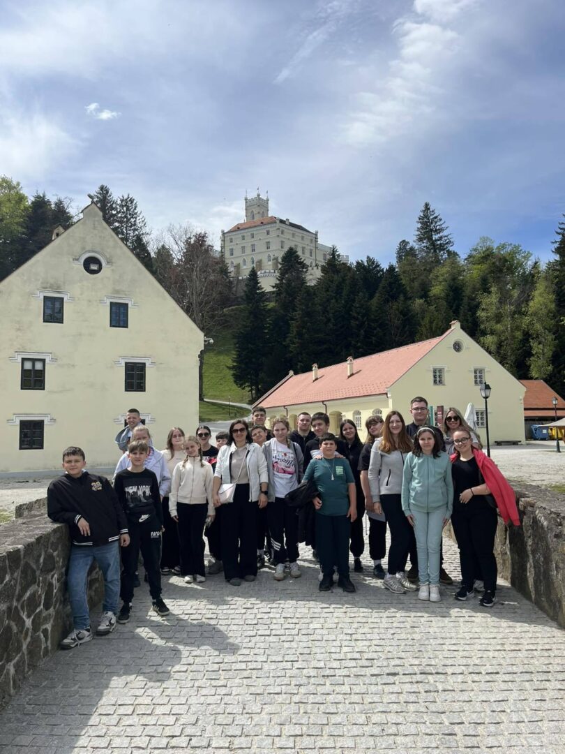 „Probudio sam se u pet sati ujutro, večer prije spremio sam putnu torbu, onako pospan ali uzbuđen pošao sam do škole i čekao bus. U busu smo malo spavali, malo razgovarali i malo igrali igrice na mobitelu. Nakon nekog vremena stali smo na odmorištu i u McDonald’s- u naručili jelo. Stigli smo i do našeg prvog odredišta Muzeja krapinskih neandertalaca u Krapini. U njemu smo mogli vidjeti kako je nastao svijet, prva živa bića, dinosaure i dr. Dotaknuo sam komadić meteora. Promatrao sam krajolik kojim smo prolazili, planine, zgrade, kuće… razlikovao se od mog zavičaja. Naše drugo odredište bio je dvorac Trakošćan koji je pripadao poznatoj hrvatskoj plemićkoj obitelji Drašković. Nalazio na uzvisini, kao da je lebdio u zraku. Proveli su nas kroz mnoge prostorije, u kojima smo vidjeli brojne obiteljske portrete, srednjovjekovne viteške oklope i oružje. Na najvišem dijelu dvorca smo se svi zajedno fotografirali. Dovezli smo se i do hotela u Stubičkim Toplicama, preuzeli sobe, raspremili se i otišli se kupati na bazene. Mogli smo s prijateljima otići i u kafić. Hrana je bila dobra. U hotelu smo se družili i igrali se te na kraju umorni zaspali. Sljedeće jutro smo se također kupali, a zatim smo se spremili, ručali i pošli u Park znanosti Oroslavlje gdje smo se također zabavili. U busu smo do kuće pjevali i družili se. Bilo nam je odlično! (DAVID ŠERFEZI, 8. razred)