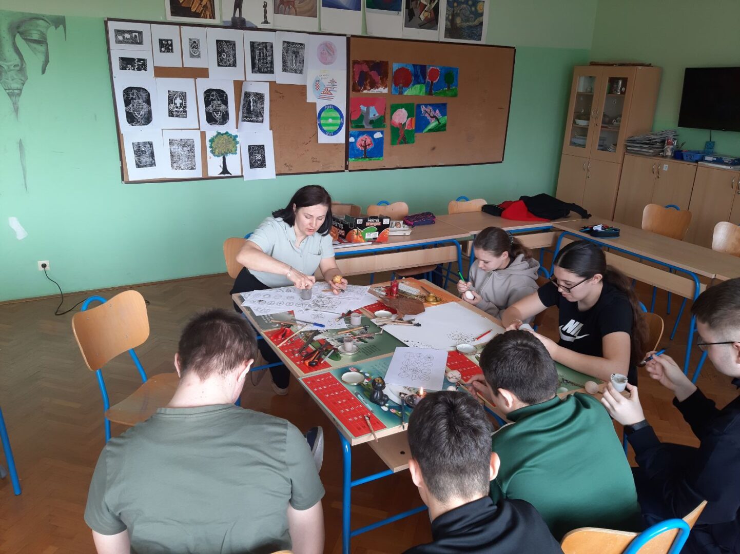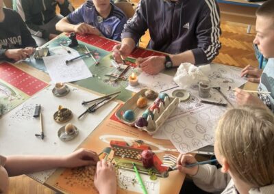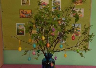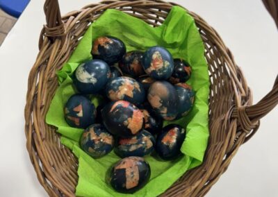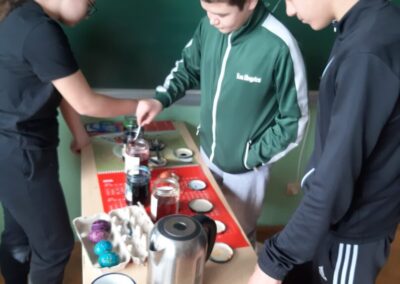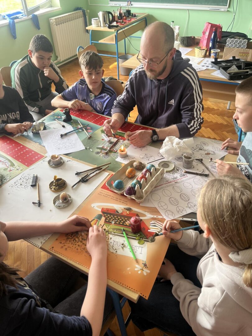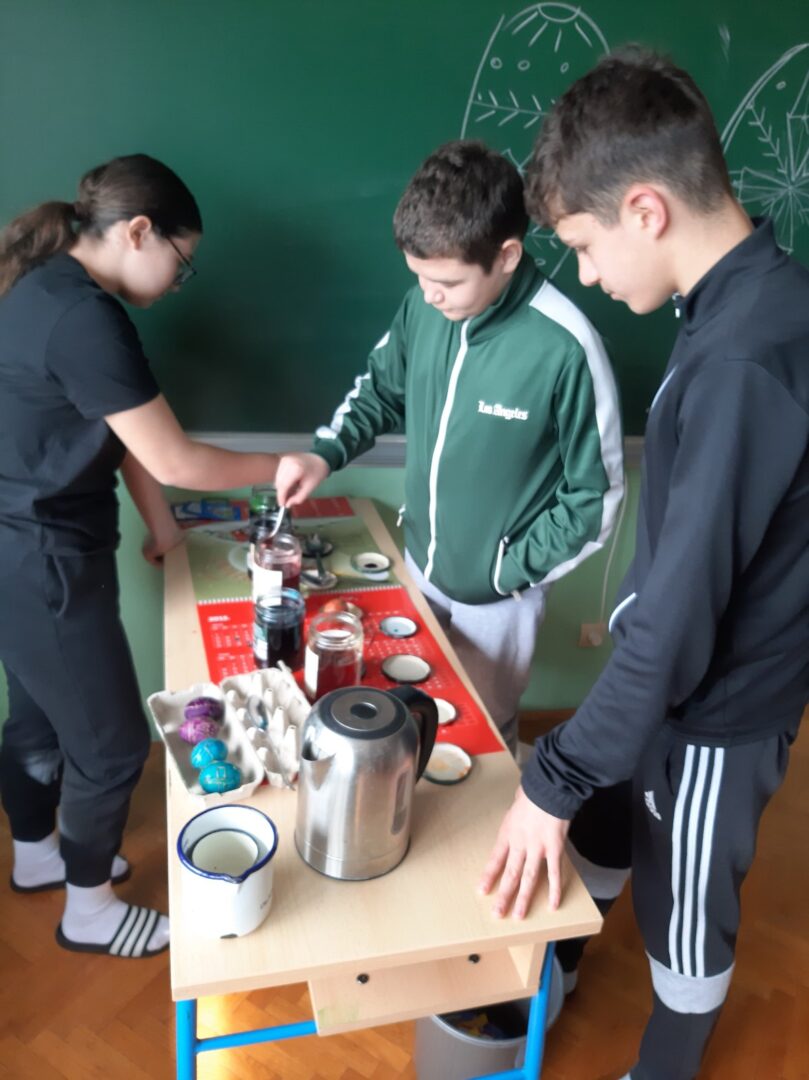 Uskrs je u našoj školi prilika za kreativnost iz različitih područja i predmeta. Tako smo saznali da se na satu Matematike može konstruirati jaje, na satu Likovne kulture, Praktičnih vještina, Vjeronauka i Učeničke zadruge bojali smo pisanice na različite načine, na satu Hrvatskoga jezika čitali smo religiozne pjesme posvećene Uskrsu.